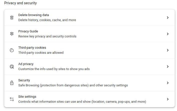 Again the answer lies in Settings and this time select Privacy and security from the left menu: