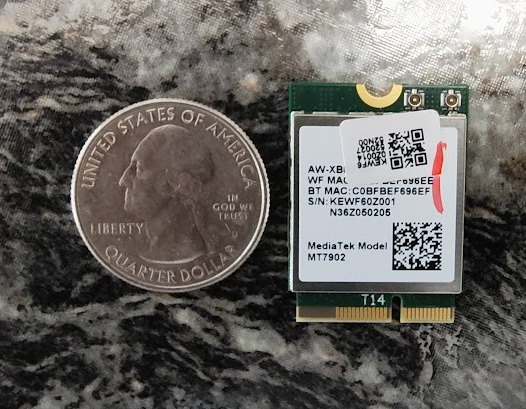Computer manufacturers buy components by the bulk and, if they can save a few dollars per unit on WIFI cards that are not universally compatible, they will. It turns out the MediaTek MT7902 has drivers for Windows only and no other operating systems. Time to call the customer.