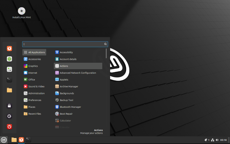 Linux Mint first boots up into a Live Mode which allows you to test the hardware for compatibility before installing the operating system: